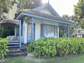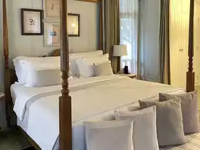 Devasom Hotel Hua Hin is a small, beautiful, and peaceful hotel. Our family loves the fact that it's not too big, and it's close to everything. The location is beautiful, close to the pool, the breakfast room, and the beach. Most importantly, the location is beautiful. We recommend bringing mosquito repellent because there are many shady trees. The place has a story. The rooms are beautiful, reminiscent of an ancient time with a contemporary feel. The beds are large and comfortable, and there's a bathtub. The rooms are just the right size. The breakfast is delicious and high-quality.