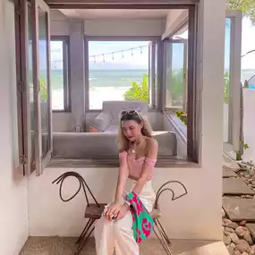 curtains gently fluttering, beanbags on the sand, and a coffee bar that opens up to the perfect sea breeze. Perfect for those who love simple but emotional photos. This place truly is a little paradise! 📸🏄🏼♀️🏖️