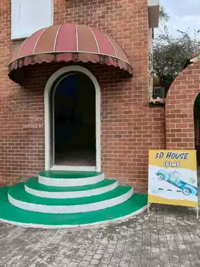 ðĨ3D House is located within a farm and village with a Swiss atmosphere. This two-story building features a red brick exterior and a European-style arched door.