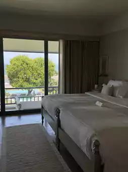 The resort features a Thai colonial design, emphasizing warm tones and exquisite details. The spacious rooms offer stunning sea views and are fully equipped with amenities. The pool is especially beautiful, complete with heart-shaped trees and stunning views.