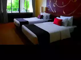 The Hotel is situated at the golf course with really good practice facilities. It also has a decent restaurant serving a variety of international/Thai food with reasonable prices, The pool area is great and even offers the possibility to do some exercise laps in. They have a shuttle service from the hotel to the city centre for several times a day. The hotel room is really good specially the balcony with the jacuzzi and a swing it's really relaxing. You can also enjoy the nature atmosphere where you can hear birds chirp which is a music to my ears every morning.