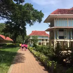 Very nice seaside palace with beautiful surrounding. Especially a French tea cafe is very peaceful to enjoy high tea. The revenue from this cafe is to support a renovation project of this palace. During the renovation period, they allow tourists to walk on palace’s balcony only on Thursday and Friday. in our case for the student to enjoy the trip they allow us to observed the relics inside the palace. Marukathayawan Palace is a lovely site along the seashore. Tranquil and peaceful, often treated by the sea with a pleasant cool breeze. It was built in the same elegant style. The various wooden construction and colors covered with red roofs make the place very photogenic. The huge well maintained garden provides spacious perspectives for the summer palace. In addition indeed a beautiful palace next to the sea and most importantly the ticket was not that expensive which only cost you 30 baht. A very pretty palace which, once fully restored, will look incredible. Definitely worth a visit if you like places of a historic nature. cons was there's not really anything to do. You aren't allowed to go inside the palace and it's still refurnishing. The garden and beach are both very nice places. They also have a souvenir shop and information stands. You have to cover knees and shoulders. You can rent a sarron there.