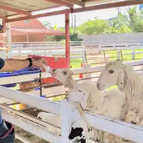 The entrance fee 180 thb. To feed the sheep with milk and grass you need to pay extra for 30 thb. Kids will enjoy this farm as the sheep here is so lovely especially the baby ship will follow u around for milk and grass. There is a tram to take you tour around the farm which have a lot of unique sculptures.But we prefer to walk to enjoy the park which really make us feel like we are in swiss except for the hot whether ❤️