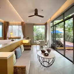 The Avani Pool Villa room has the good point of privacy. It is not connected to the Main Pool like other rooms. It will be fenced with walls, trees and waterfall curtains. And there is a beautiful garden area with shade from large trees. With a private pool (Private Pool) that is really big enough to swim in, not just soak in. This type of room is very suitable for couples. (Recommended for honeymoons 😘)