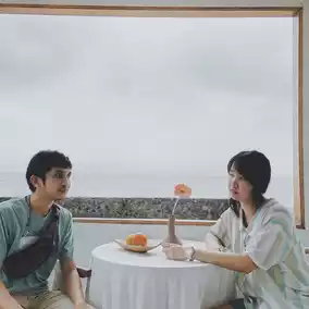 A cafe right by the sea. In fact, there is a caravan accommodation in the cafe area. The cafe is open-air with umbrellas to protect from the sun. I went at noon, it was very hot, but there were still a lot of people. You can bring your cat with you. There is a popular photo spot where you can sit in front of the large window and see the sea. In addition to drinks, there are also Korean food menus like kimbap and snacks for sale.