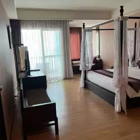 When I booked this hotel for one night I never thought we would stay for five! It is a great place right on the beach in Cha am which is close to Hua Hin. We booked a 52 Deluxe room with sea view (photo 18@19) which also has a balcony. Room and bathroom are very big.There is also air hair dryer and water kettle as well as a refrigerator.