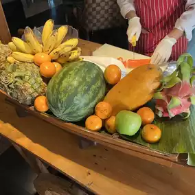 The breakfast is good quality and the fruits prepared in front of you. Real coffee. (photo 6-8)