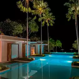 For those who wake up early, the sunlight here is very beautiful. Reflecting on the hotel's swimming pool, the light is beautiful.