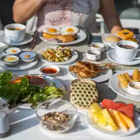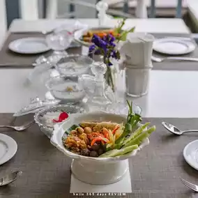 For the food here, the flavors are delicious, whether it's breakfast or other meals, including "Khao Chae" and "Khanom Kroat Nam Kati", royal menus that you can't miss when visiting here, including afternoon Tea Time in front of the room that the resort provides when staying in a villa, giving more time to talk about various things in the family. As for the adults, there is an activity to make royal Khanom Krok for us to try and taste.