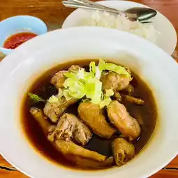 Bitter melon is near Wat Luang Pho Sothon. This famous original shop that many people love for its deliciousness. A large bowl of stewed chicken noodles is served with a lot of food and is not expensive. 🌟This shop's bitter melon chicken noodle has stewed chicken legs, stewed chicken feet and legs. The stewed menu has very soft meat. Chicken noodle soup - plain rice, delicious soup, buffet of fresh vegetables. The shop has grilled pork meatballs and spicy sauce. You must try it!! It's packed with customers every day. The shop is clean and provides good service. Come and try it. It's definitely delicious.