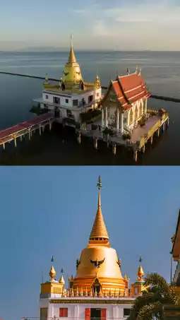 One of the most unique spots in Chachoengsao is Wat Hong Thong, a temple built on stilts over the Gulf of Thailand. The golden ordination hall appears to float above the water, offering stunning views and a tranquil atmosphere unlike any other.
