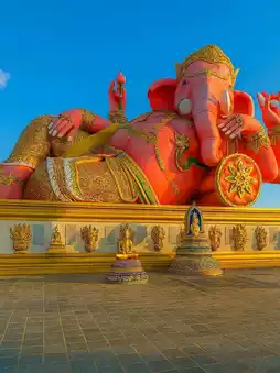 💛 For those seeking religious merit, start at Wat Sothon Wararam Worawihan to pay homage to Luang Pho Sothon, the city's revered Buddha image known for its sacredness 🙏. Then, admire the giant pink reclining Ganesha statue at Wat Saman Rattanaram 🐘💖, a landmark that everyone must stop to take photos with.