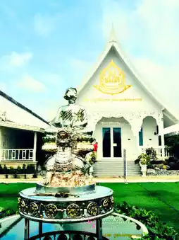 🌺Worshiping at Wat Akhom Sithaphon in Bang Nam Priao District, Chachoengsao Province, is an exciting experience for those seeking merit. This temple stands out for its exceptionally tall, standing Buddha image (said to be the tallest in the world when completed) and is a popular destination for those seeking blessings and blessings from Luang Por Ruay Than Jai. The temple also houses a replica of the underwater city, or Naga Palace, for those seeking spiritual worship, paying homage to Grandfather Phuchong and Grandmother Thongkham. Although the temple itself is still under construction and development, there are numerous merit-making points available, the overall atmosphere is peaceful and shady. Located along the Bang Pakong River, the temple also boasts a cafe where you can relax and feed the fish.
