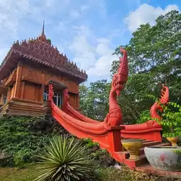 Located in Charoen Suk Subdistrict, Chalerm Phrakiat District, Buriram, this temple is uniquely beautiful with its red brick structures on a hill. It features 3-4 chapels, Buddha statues, and intricate Khmer-style designs. Upon reaching the top, visitors are greeted with stunning views and a serene atmosphere.