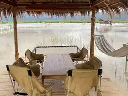 Known as the "Fuji of Laos," the refreshing experience of reaching out, standing, and taking in the lush greenery is a refreshing experience. Order a warm drink and enjoy the view. Connect with the mist, mountains, rice fields, and the breeze with cocoa and coffee, while enjoying the rice paddy views. #SouthernLaos #Cafe #RicefieldCafe