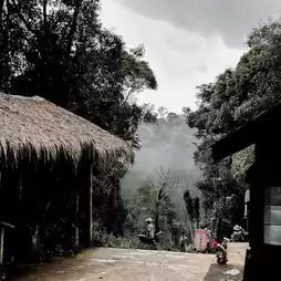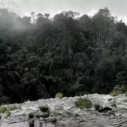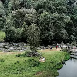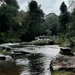 Tad Yueng Waterfall in Southern Laos, everyone. This place is full of good atmosphere, surrounded by mountains, which will have a waterfall that falls from the mountain in a very beautiful stream. And don't even mention the weather, everyone, it's very good. You can feel the sincere relaxation. And here, there is delicious food and very cheap. Everyone, try to visit Southern Laos.