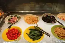 The hot food selection has honey grapefruit bones, sweet and sour and appetizing, bite-sized