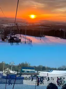 π In the evening, the sky gradually turned orange-red, and the ski resort was bathed in a golden glow by the sunset, so beautiful it was intoxicating! At this time, why not rent a sled and enjoy a leisurely snow walk with family and friends, the warmth index is off the charts! π«
