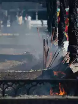 The temple advocates 'a petal of heart incense, civilized incense offering'; do not bring external incense, candles, or flammable items into the temple.