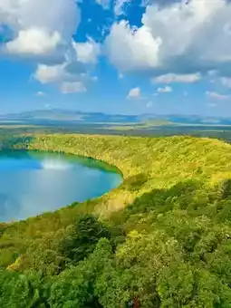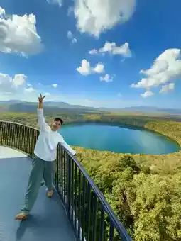 I heard that in the past, visitors could only see the full panoramic round volcanic lake with a drone, but now you just need to climb up to the observation tower to take it all in.