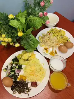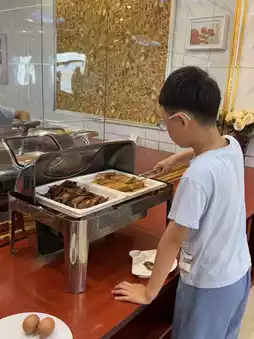 The lobby has sand-removal mats—no more worrying about tracking sand inside! The courtyard swings and lounging areas let the kids rest whenever tired🌿. Breakfast was hearty—buns, porridge, eggs, side dishes… the kids ate happily, fueling up for the day🥪.