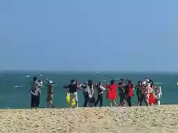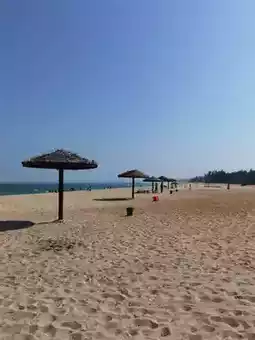 The next day, I went to Dajiao Beach, which was beautiful. There was a long red boardwalk on the beach, and walking along it allowed me to take in the breathtaking views of the sea.