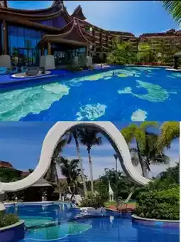 I stayed at a hotel in Zhongjiao, where I saw a stunning sunset that I will never forget. The hotel also had a children's water park and various cute animals. Unfortunately, it was too cold to play in the water park or try the rafting activity, so I could only enjoy the scenery.