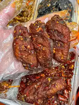 You must buy their chicken wings, toothpick beef, king oyster mushrooms, and sauced duck!! The toothpick beef is really spicy and not too salty! It tastes so delicious that you can't stop eating it. The chicken wings are also very big and have a lot of meat! I can eat five or six at a time!
