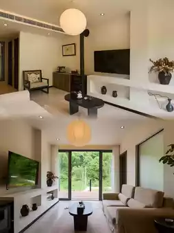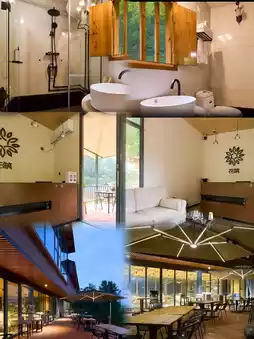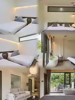 ⭐Multiple suites, large floor-to-ceiling windows throughout the courtyard, you can look out over the green mountains while lying on the bed