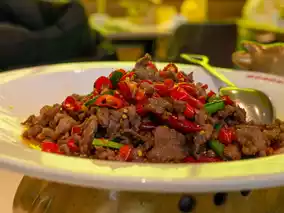 - Chili stir-fried meat: Attempted in Changsha hot pot restaurant, spicy flavor, makes people want to stop. 🔥