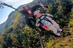 The most worthwhile experience at Heimi Peak is paragliding. It only takes 4-6 minutes to fly down from the mountain. Standing on the top of the mountain, you can enjoy the open view and feel the free wind after taking off. This time, Wuwan and I both experienced paragliding. It was the first time for 3-year-old Wuwan to fly a paraglider, and he was calm and composed. He is really fearless like a newborn calf 🤙👍