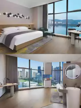 The rooms are spacious and bright, with complete facilities, comfortable beds, and large floor-to-ceiling windows, allowing you to enjoy the beautiful view of Meixi Lake from your room. The lake view rooms are even more special. Every morning, you can wake up to the sound of birds and the fragrance of flowers, open the curtains, and enjoy the lake view.
