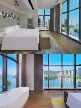 The hotel is in a great location. You can go cycling around the lake as soon as you go downstairs and feel the breeze from the lake. The white sand beach is just a stone's throw away, and the fine sand and clear water are perfect for taking photos. You can drive to Yuelu Academy, Orange Isle, and other attractions in half an hour to experience the history and culture of Changsha.