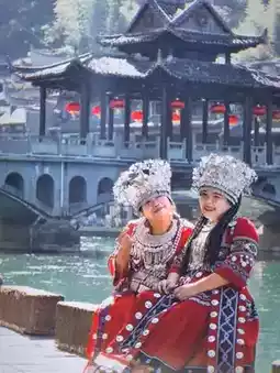 📌Take the high-speed train to Fenghuang, a world heritage site. Dress beautifully in Miao clothing and see the ancient houses by the water.