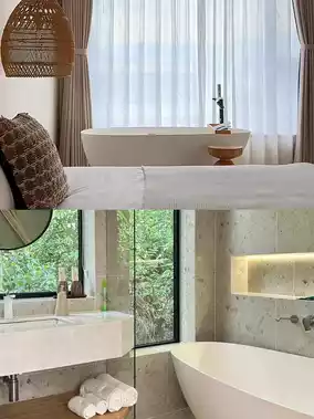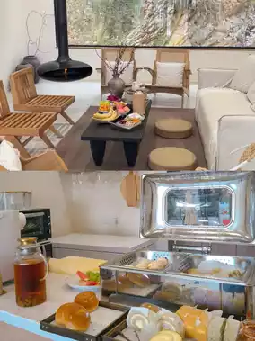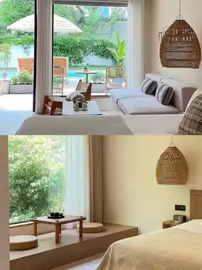 The room is surrounded by forests and built on the mountain ⛰️, away from the hustle and bustle of the city, making people relieve their fatigue ❕ The room is fully equipped with fully transparent floor-to-ceiling windows🪟, and there are mountains and forests outside🌳. When the morning sun☀️ shines in, the whole house is naturally bright. The modern architecture gives people a simple and warm feeling at home💕