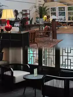- A wooden sculpture of Qu Yuan graces the center of the lobby, flanked by calligraphy and inscriptions by Hunan cultural figures like Shen Congwen. The bookshelves are filled with Hunan cultural literature, creating a museum-like ambiance.