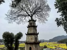 1. Xizi Pagoda: A Qing Dynasty ancient pagoda with trees growing on top, a spectacular sight (about 2 km from the flower sea).