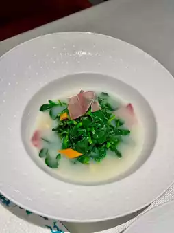 Spring rolls are a specialty, and pairing them with shepherd's purse is innovative