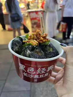 Snacks: "Black Classic" stinky tofu with a crispy exterior and juicy interior; "Jinji Sugar Oil TuoTuo".