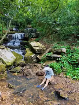 Originally, my bestie and I planned a simple hike at Taohualing Park, nothing fancy. But then, the heavens unleashed a downpour—sounds bad? No! It turned out to be a huge surprise ✨. As soon as we entered the park, we were drawn by the sound of rushing water. Yes, you heard right—like a fairy-tale soundtrack, we followed the sound through the grass and stumbled upon a sparkling stream!