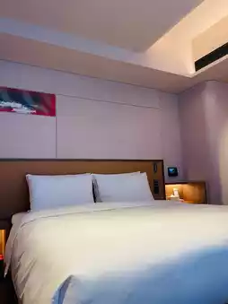 Rooms are equipped with voice-controlled smart systems 🎙—just call "Xiao Man" to control the lights, TV, and AC. For food delivery 🍱, the hotel's robot butler will bring your order right to your door for added convenience.
