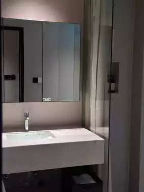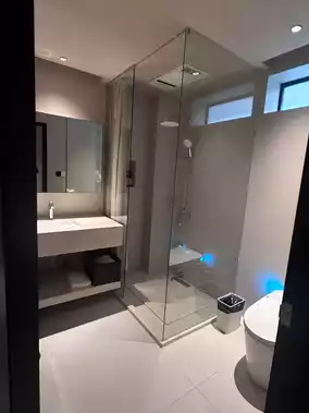 The bathroom has a well-done dry and wet separation, with a smart toilet and exquisite toiletries that are both practical and stylish. The shower area’s small details are also carefully considered, fully enhancing the ambiance 💫