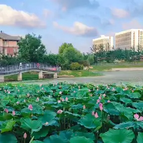 The beautiful lotus pond at Yanghu Wetland Park resembles a serene painting. The fresh air and gentle breeze bring a sense of tranquility and relaxation.