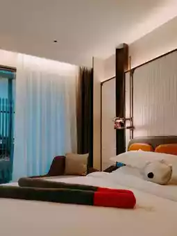 The room design is excellent! The queen bed room is very spacious, and the bedding is as soft as clouds, instantly relieving all fatigue when lying down, greatly enhancing sleep quality. The room also features a smart system, providing a full score experience!