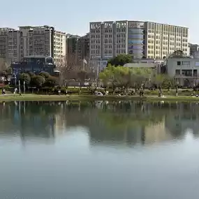 Strolling around the lake is incredibly relaxing 🌿. The sunset here is absolutely breathtaking, with golden hues reflecting off the water, compelling you to stop and capture the moment 📸. Nearby, you'll also find a futuristic white building designed by Zaha Hadid 🏛️. The first time I saw it, I was genuinely amazed! Its curved, minimalist design feels straight out of a sci-fi movie 😆.
