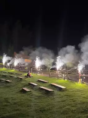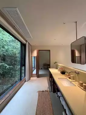 The natural wood design hits the aesthetic perfectly, and the spacious area makes you feel relaxed. The bedding is of excellent quality, offering a perfect sleep experience; panoramic floor-to-ceiling windows plus a private large balcony are standard, so you can cozy up on the sofa and enjoy the mountain view to your heart’s content—so delightful! The service is also very thoughtful, with options to order local specialty lunch and dinner, and every night there’s a group fireworks event, creating an amazing atmosphere!