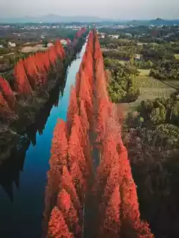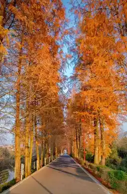 Hidden in Teli Village, Jiangbei Town, this metasequoia forest holds the richest colors of Changsha’s autumn. The metasequoias here are old, with tall, upright trunks and layered branches. As autumn arrives, nature carefully "dyes" them: the top branches turn a translucent orange-red, the middle glows warm golden yellow, and the lower parts retain some deep green. The three colors intertwine, and from afar, the entire avenue looks like a spilled palette—vibrant and healing.