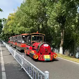 • Hop on the sightseeing mini train (观光小火车) — ¥40 round trip — and ride all the way to the end for the Mao Zedong Art Sculpture (毛泽东青年艺术雕塑), the island’s C-spot!