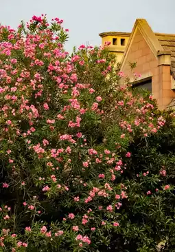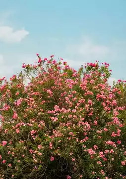Changshu Baozi's most beautiful bus stop with blooming oleanders. The most beautiful bus stop in Changshu is adorned with thousands of oleander flowers. The bus stop exudes charm, with August's blossoms reflecting the morning light.