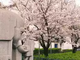 The banks of the moat are lined with cherry blossom trees. When spring arrives, pink and white blossoms fill the sky like clouds. When the wind blows, the petals gently fall, making you feel like you've stepped into an anime scene! π
